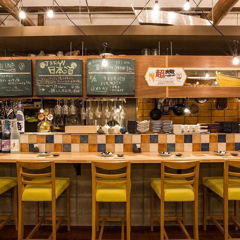 大人数でのご宴会時には、テーブルとカウンター席をまるっと全部使用し、店内を貸切でご利用いただけます。大小様々な人数に対応できる、使い勝手抜群の空間です。貸切をご希望のお客様は「貸切コース」でぜひご予約ください!各種宴会や同窓会、打ち上げなど、皆様のご利用お待ちしております◎