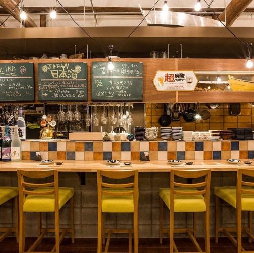 ゆったりと使用できるテーブルとカウンター席を完備。団体でのご利用は店舗を丸ごと貸切がおすすめです◎